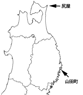 | 山田町は岩手県の三陸沿岸,宮古市の下に位置しています。穏やかな山田湾と外海に突き出した船越半島があり,多種多様な海藻が生育しています。 | ||||