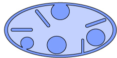 | エクスカベート(エクスカバータ)類と呼ばれるスーパーグループに所属する原生生物の内,ミトコンドリアを持たないグループに見られる細胞小器官です。ヒドロジェノソームを持つエクスカベート類は,嫌気環境や貧酸素環境に生息しています。かつて,ヒドロジェノソームは真核生物の起源となったバクテリアのなごりではないかと考えられていた事がありましたが,近年では,嫌気的な環境に生育している生き物が環境に適応するため,ミトコンドリアを変化させたものと考えられています。ミトコンドリア同様ATPを生成する働きがあり,その過程で二酸化炭素と共に水素を生じるのが特徴です。(鈴木) | |