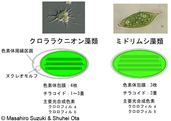 | 光合成生物の色素体 1. クロララクニオン藻類とミドリムシ藻類 | ||||
