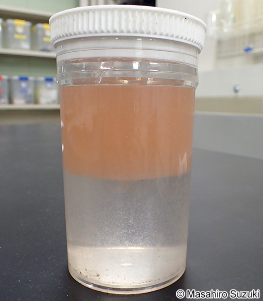 ヤコウチュウ(Noctiluca scintillans)は,「夜光虫」が示す通り,夜になると青白く光ります。海水を持ち帰り,発光の様子を観察しました。発光自体はうまくいったのですが,残念ながら撮影に失敗してしまいました(注)。機会があれば夜の海岸で,発光の様子を観察したいと思っています。 注.神戸大学内海域環境教育研究センターのInstagramに,RO博士が撮影されたヤコウチュウの発光の様子が公開されているのでオススメです。 |