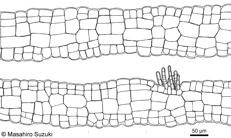 | 押し葉標本(採集地:新潟県 佐渡市 小木 矢島・経島(佐渡島);採集日:2003年3月1日;採集者:鈴木雅大) |