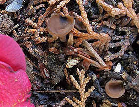 | シトネタケ属の1種 | 子嚢菌亜門 核菌綱 クロサイワイタケ目 | 子嚢菌門 チャワンタケ亜門 フンタマカビ綱 クロサイワイタケ目 | ||