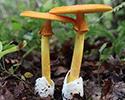 菌類の仲間は,菌糸が多数集まった子実体という構造を作ります。子実体では胞子や分生子という生殖細胞を形成します。子実体の中には肉眼で見えるくらい大型になるものがあり,これを「キノコ」と呼んでいます。「キノコ」の多くは分類学的には担子菌門に所属していますが,アミガサタケのように子嚢菌門に所属しているものもあります。 注.本サイトでは購入したもの,野外で撮影したものも含めて食用キノコと毒キノコの両方を掲載しています。著者は菌類の専門家ではなく,野外での見分け方や同定法については全くの素人です。毒キノコか食キノコかを見極めるのは極めて難しく,図鑑を良く読んで勉強することはもちろん,専門家や経験者に教わる必要があります。 |