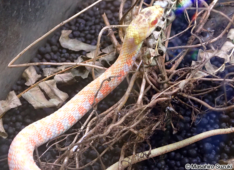 幼体です。コブラのようにフードを広げ威嚇行動を見せることもあります。