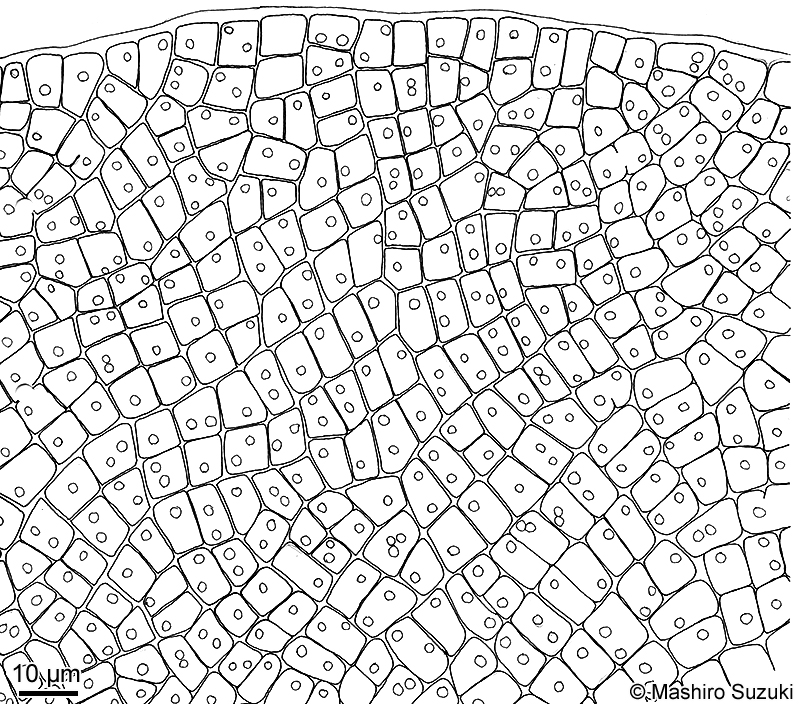 | 体はヒトエグサの仲間のように1層の細胞層から成ります。 |