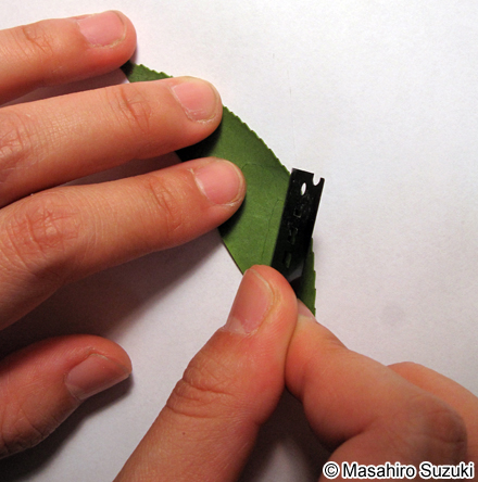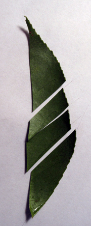 | 葉身の部分を幅5 mm程に切って短冊をつくります。 | ||