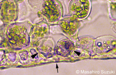 | 気孔(矢印)と孔辺細胞(矢頭) | 葉の維管束 | |