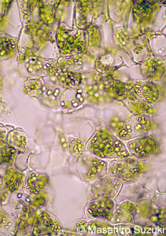 | 気孔を通してのガス交換を行うため,空気間隙(細胞間隙)が多く,細胞は不規則に配列しています。細胞に含まれる葉緑体の数は柵状組織の細胞よりも少なくなります。 | |