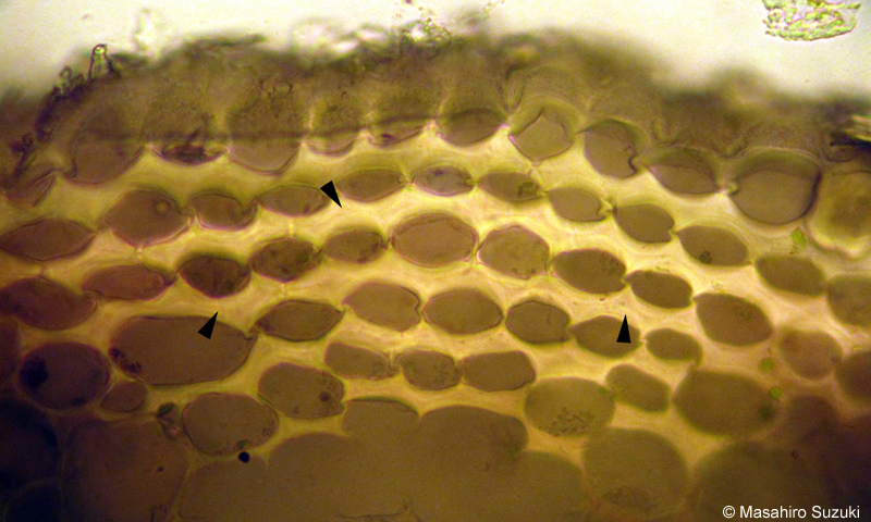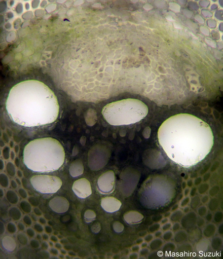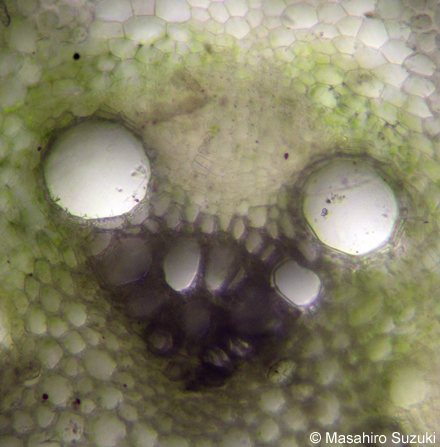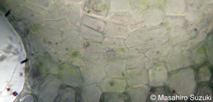 どの種でも厚角組織が見られますが,ハンショウヅルではセンニンソウほど発達しません。ボタンヅルの厚角組織は板状肥厚か角隅肥厚か区別が曖昧です。